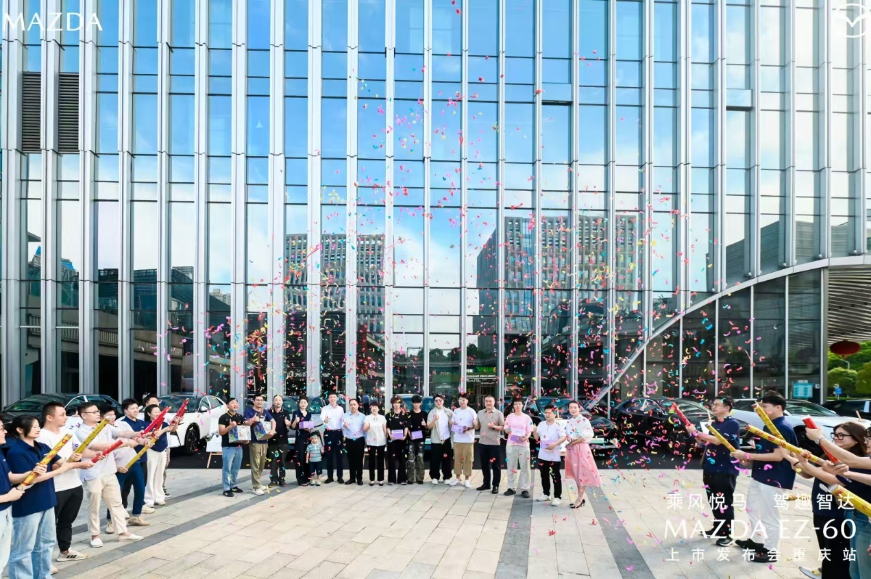 EZ-60的性价比优势不止于价格,更体现在全维度的产品力输出。设计上,新车延续马自达魂动美学基因,60mm深度的"立体光雕标志之翼"灯带内置72颗灯珠,星云紫等车漆采用"湿碰湿"三层喷涂工艺,随角异色性达23.7,质感媲美豪华车型。同级首创的9组贯穿式风道设计,不仅使风阻减少60.8counts、CLTC续航提升41km,更将高速风噪优化4dB(A),完美适配重庆多隧道、多坡道的路况特点。