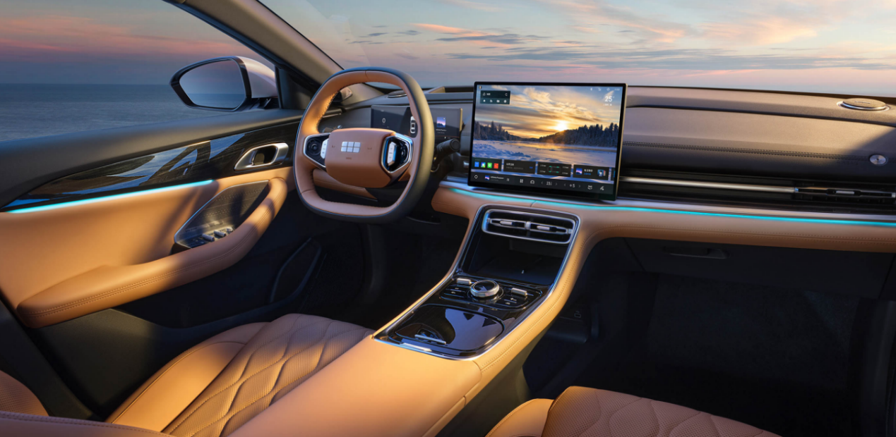银河A7的座舱设计则更偏向科技感的营造。大尺寸屏幕和简约的设计语言,创造了一个现代化的数字空间。这种设计对于科技爱好者来说颇具吸引力,但在营造家庭温馨氛围方面相对有限。荣威M7 DMH的座舱设计,则试图在科技与温馨之间寻找平衡,既保留了必要的智能化配置,又通过材质和色彩的运用,营造出更适合家庭使用的舒适环境。