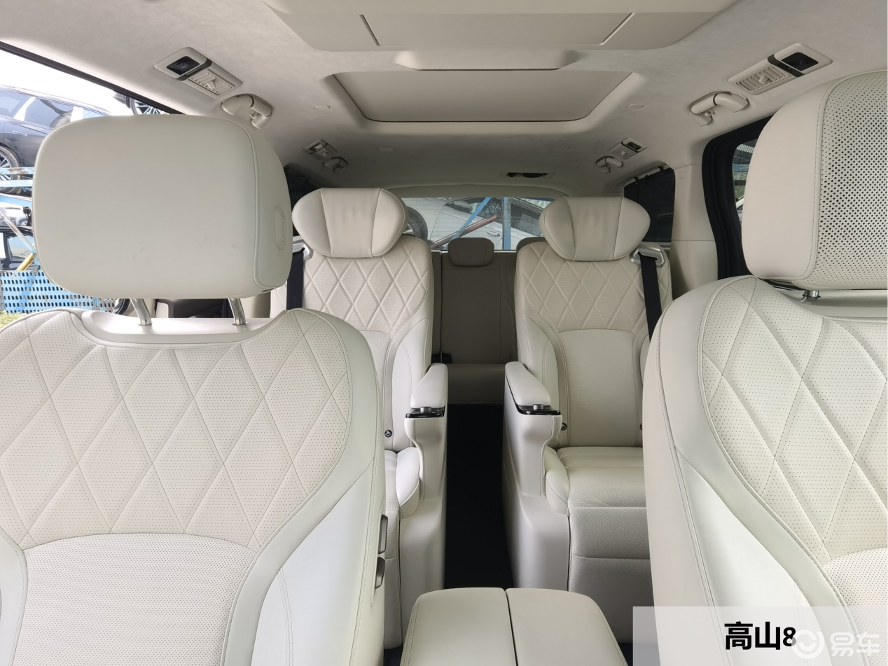 高山9车长超5.4米,轴距达3275mm,数据非常夸张,市面上几乎找不到比它更大的MPV。比如,即将要上市的吉利银河V900,将推出8座版本,车长也就5360mm。