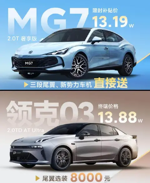 跟领克03比起来,MG7的车身更长,看起来更有气势,2.0T版本还便宜七千块钱,还多出电动尾翼这些配置,和亚洲龙这种合资车型相比,它的动力更足,智能化程度更高,设计也偏向年轻化,但很多人还是认为合资品牌更可靠,即便实际体验不一定更好,用户反馈里提到最多的是后排头部空间小、油耗偏高、风噪明显,这说明大家买车的时候先考虑实用性,再考虑驾驶乐趣。