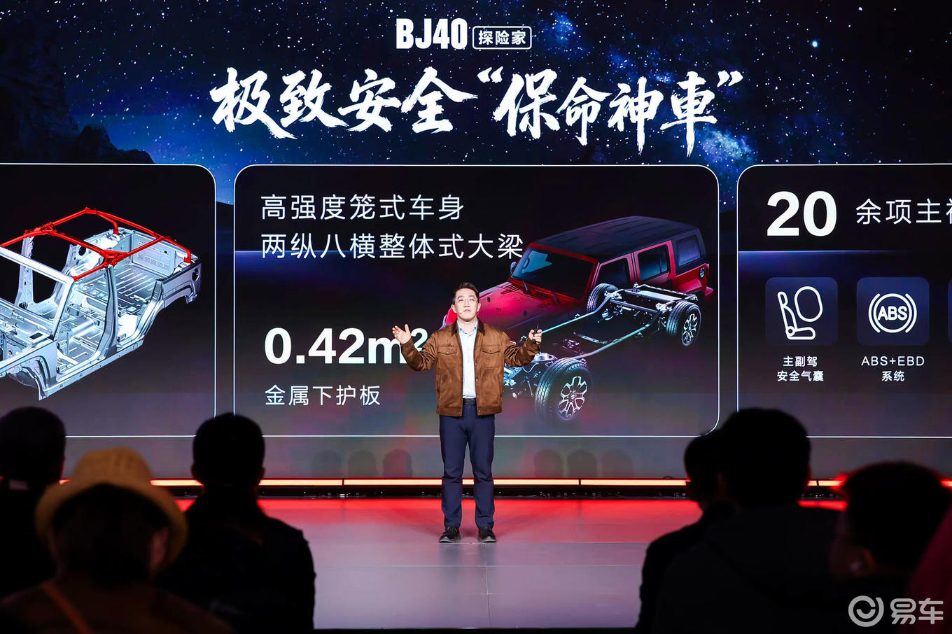 新车保持了硬派越野车型的高规格安全防护。整车搭载外露式金属防滚架,采用高强度笼式车身结构,以及两纵八横整体式大梁,为车内提供坚固的安全基础。车底采用一体冲压锰钢护板,对核心部件进行严密防护,并配备20余项主被动安全功能。