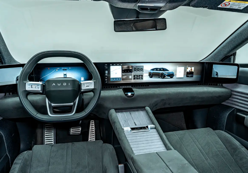 上汽奥迪E7X是AUDI品牌旗下的首款纯电SUV,封闭式前脸配备一圈环绕式光源,两侧还是点阵式灯组,搭配发光的Logo,前脸科技感浓郁。侧身采用隐藏式门把手和多辐式熏黑轮毂,迎合了年轻人的审美。新车长宽高分别为5049/1997/1710mm,轴距3060mm。尾部造型与前脸相互呼应。内饰几乎看不出奥迪的风格,一眼望去全是大屏,将内置符合国人习惯的车机功能。